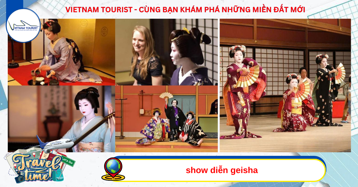 Trưa : Đoàn dùng bữa tại nhà hàng thưởng thức show diễn ca múa nhạc truyền thống quyến rũ của các geisha nét đẹp văn hóa lịch sử của một trong những biểu tượng đất nước Nhật Bản . Những bộ kimono được tô vẽ chi tiết cầu kì , kiểu trang điểm nổi bật đặc trưng đại diện cho vẻ đẹp và sự thanh lịch