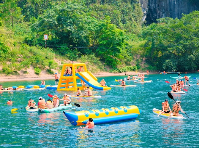 - Khám phá các hoạt động như chèo thuyền kayak, chèo Sup giữa sông và ngắm cảnh non nước hùng vĩ.