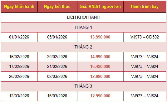 THỜI GIAN:5 NGÀY 4 ĐÊM