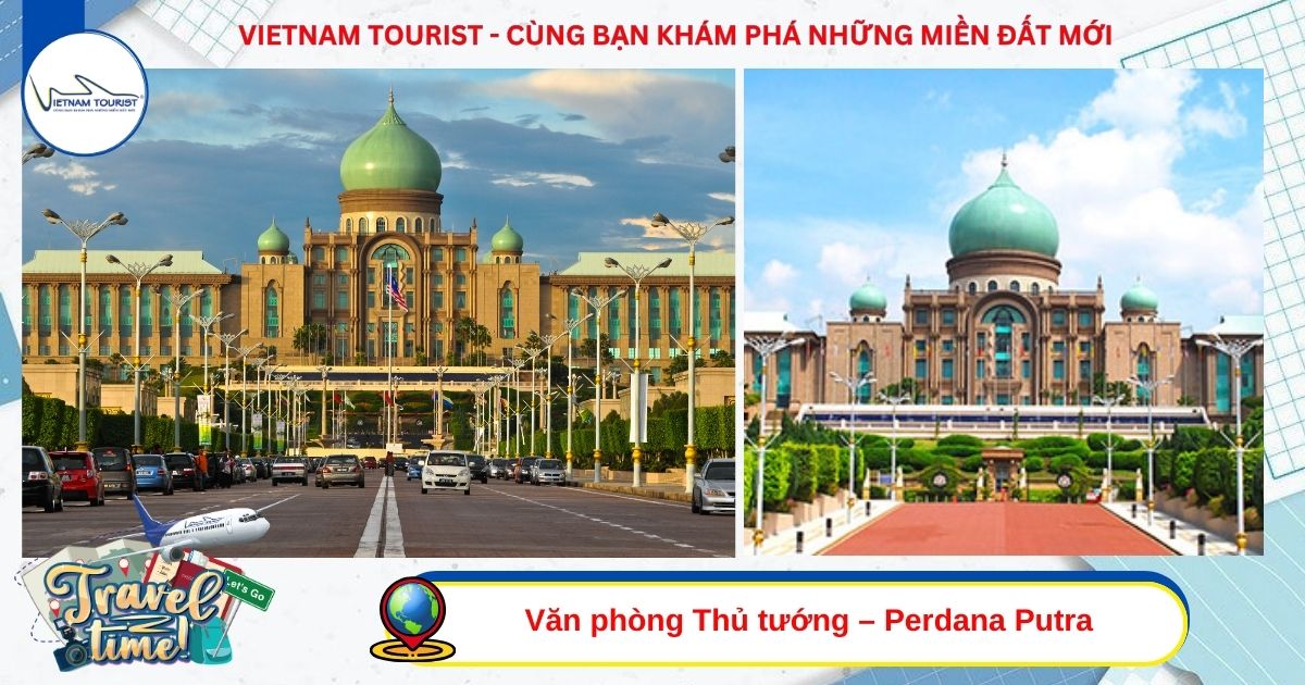 Check-in Văn phòng Thủ tướng – Perdana Putra – Tòa nhà hành chính biểu tượng của thành phố Putrajaya, là nơi làm việc chính thức của Thủ tướng Malaysia. Công trình mang kiến trúc Hồi giáo kết hợp phong cách châu Âu cổ điển, nổi bật với mái vòm xanh ngọc bích và khối nhà uy nghi tọa lạc trên đồi Putra. Du khách dừng chân chiêm ngưỡng, chụp hình toàn cảnh Putra Mosque và hồ Putrajaya tuyệt đẹp từ phía trước tòa nhà.