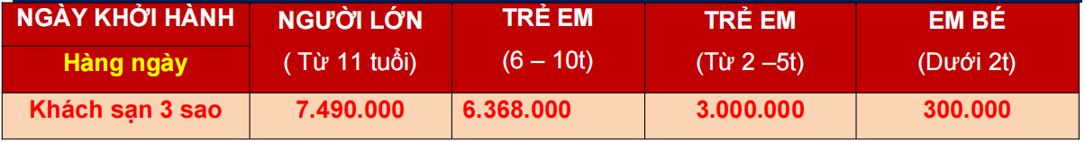 - Trẻ em từ 11 tuổi: 100% giá tour người lớn.