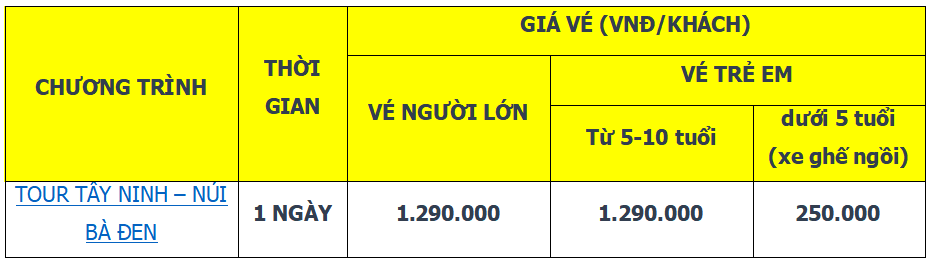 Lịch trình chi tiết tour TOUR TÂY NINH – NÚI BÀ ĐEN – TOÀ THÁNH CAO ĐÀI 1 NGÀY