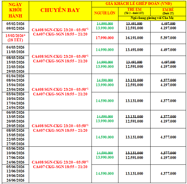 - Do các chuyến bay phụ thuộc vào các hãng Hàng Không nên trong một số trường hợp giờ bay có thể thay đổi mà không được thông báo trước.